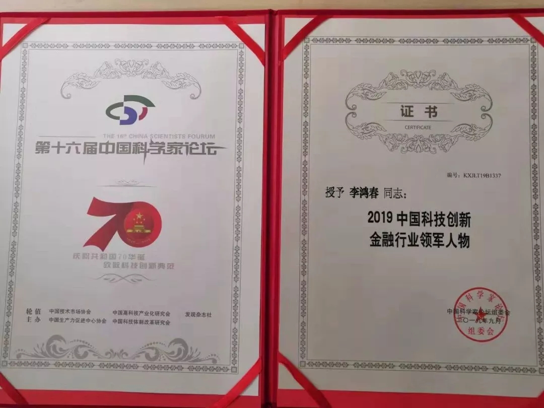 2019年9月8日,“第十六届中国科学家论坛”在北京召开,来自全国各地各行业的1000余位院士专家、科技工作者、企业家共襄盛会,围绕新技术、新产业、新业态等热点展开探讨与分享。中国科学院原副院长杨柏龄,国际欧亚科学院院士、中国科技体制改革研究会理事长张景安等领导出席大会并致辞。大会同时对优秀企业、企业家进行了表彰,BB贝博艾弗森官网荣获“2019中国科技创新金融行业领军企业”,BB贝博艾弗森官网总裁李鸿春先生荣膺“2019中国科技创新金融行业领军人物”。