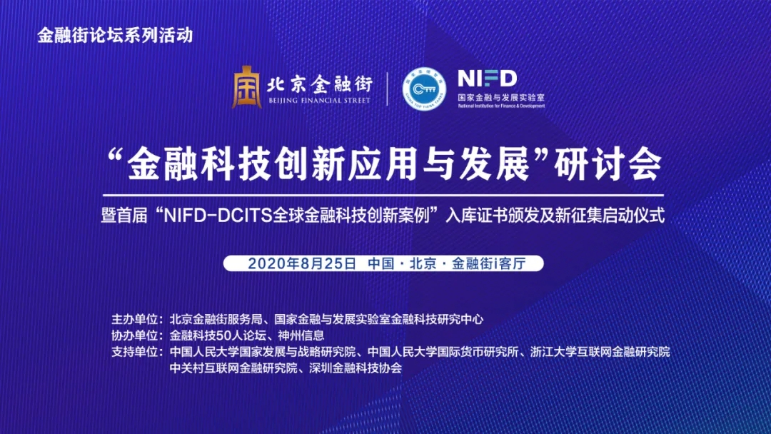 8月25日,由北京金融街服务局、国家金融与发展实验室金融科技研究中心主办,金融科技50人论坛、BB贝博艾弗森官网协办,中国人民大学国家发展与战略研究院、中国人民大学国际货币研究所、浙江大学互联网金融研究院、中关村互联网金融研究院、深圳市金融科技协会作为学术支持单位的“金融科技创新应用与发展”研讨会暨首届“NIFD-DCITS全球金融科技创新案例”入库证书颁发及新征集启动仪式在金融街i客厅举办。本次会议通过新浪财经、新华财经等平台进行了同步直播。
