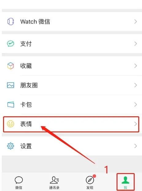 1、点击微信底部菜单→“我的”→“表情”