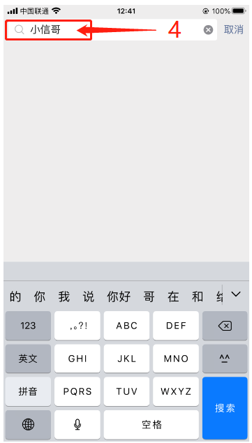 4、在搜索框输入“小信哥”,点击搜索
