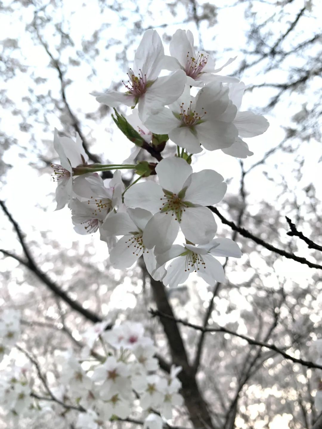 阳光下春天的魅力无法阻挡,走在樱花树下抬头一望,樱花布满长空,一阵微风轻拂而起,樱花随着枝头翩翩起舞,像是白色的轻纱随风拂动,令人不禁怀疑自己是在梦中。